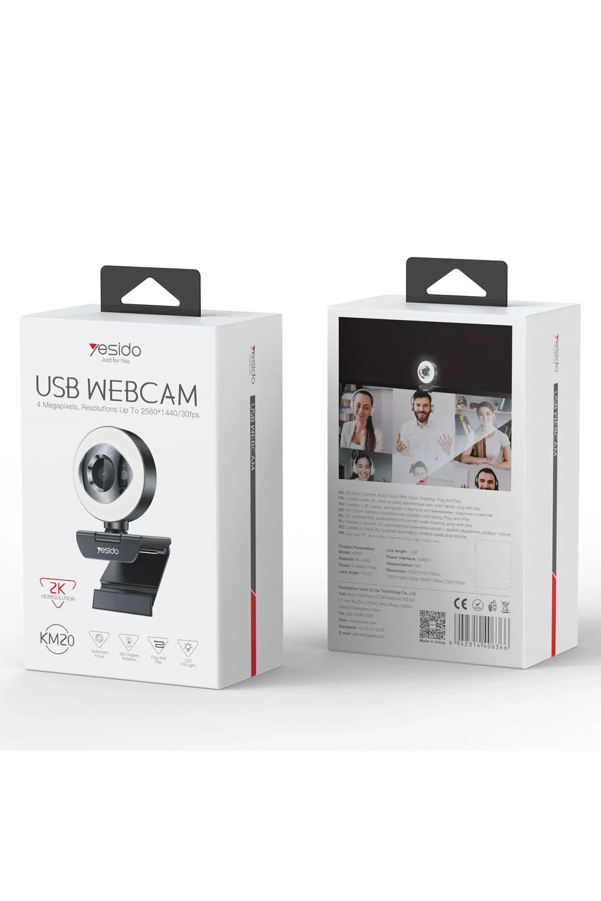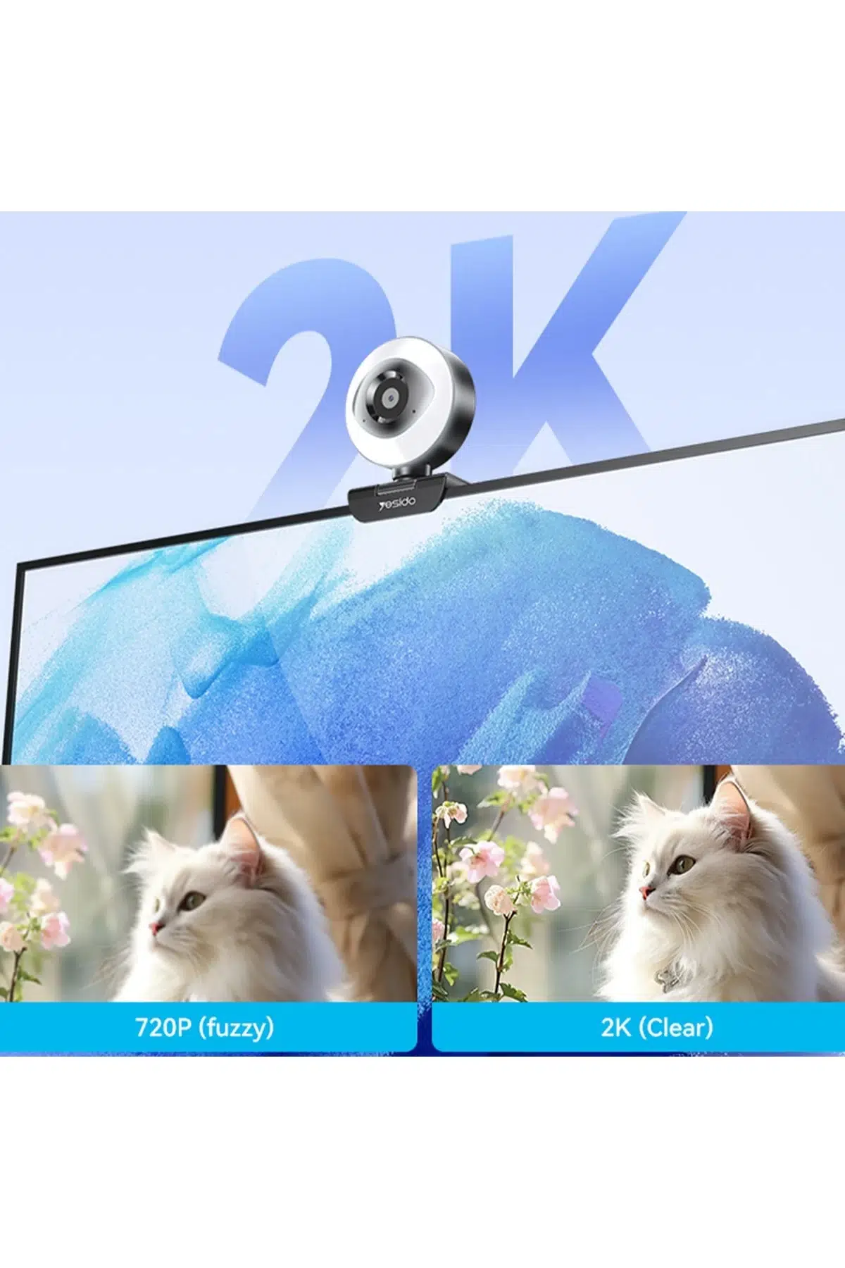 Yesido KM20 2K 4MP Led Aydınlatmalı USB Web Kamera