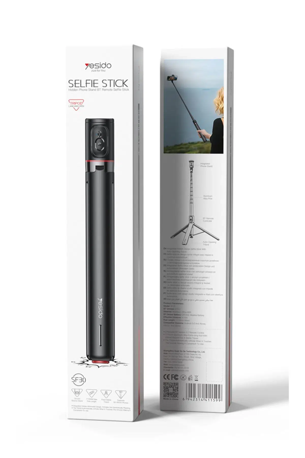 Yesido SF30 Düşmeye Karşı Mekanizmalı BT 5.2 Tripodlu Selfie Çubuğu