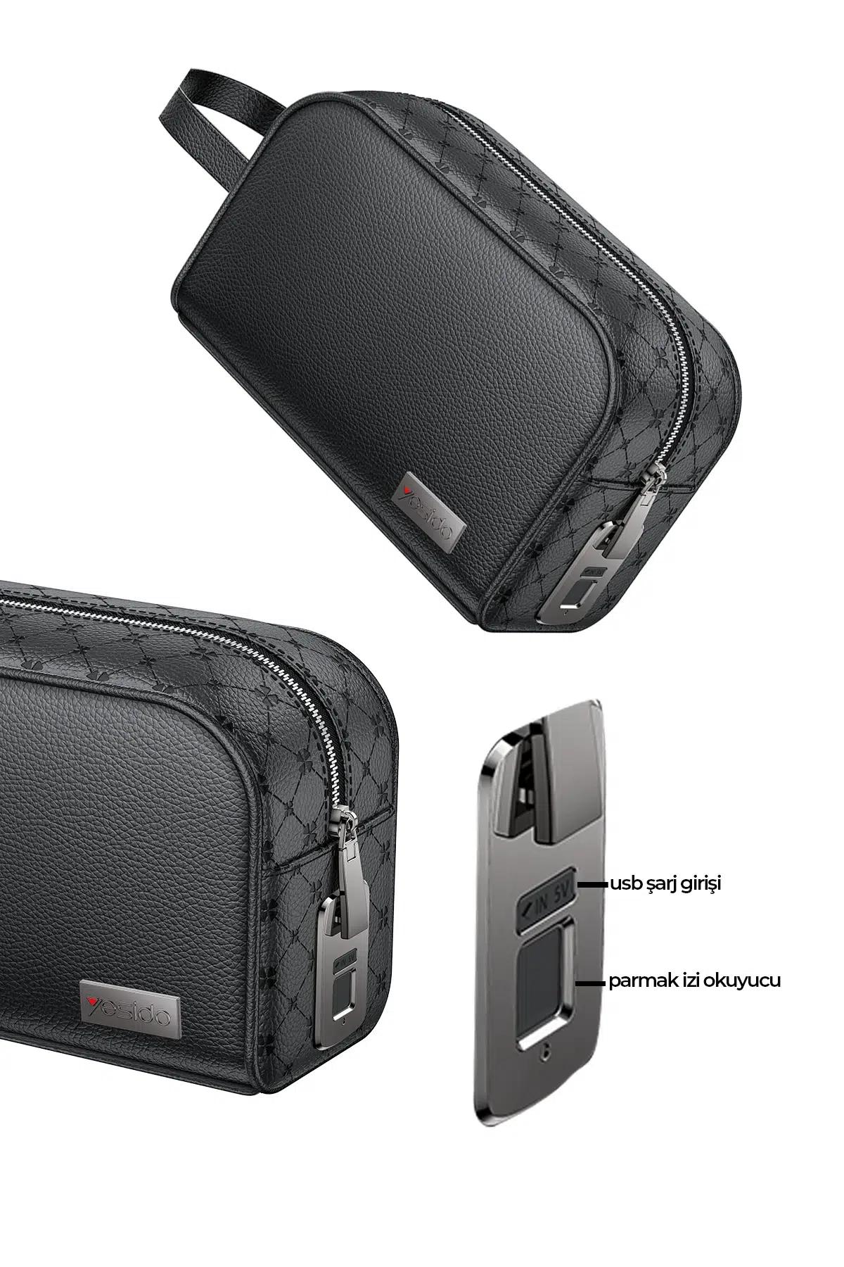 Yesido WB57 Deri Parmak İzi Kilit Güvenlik Özellikli Makyaj Çantası