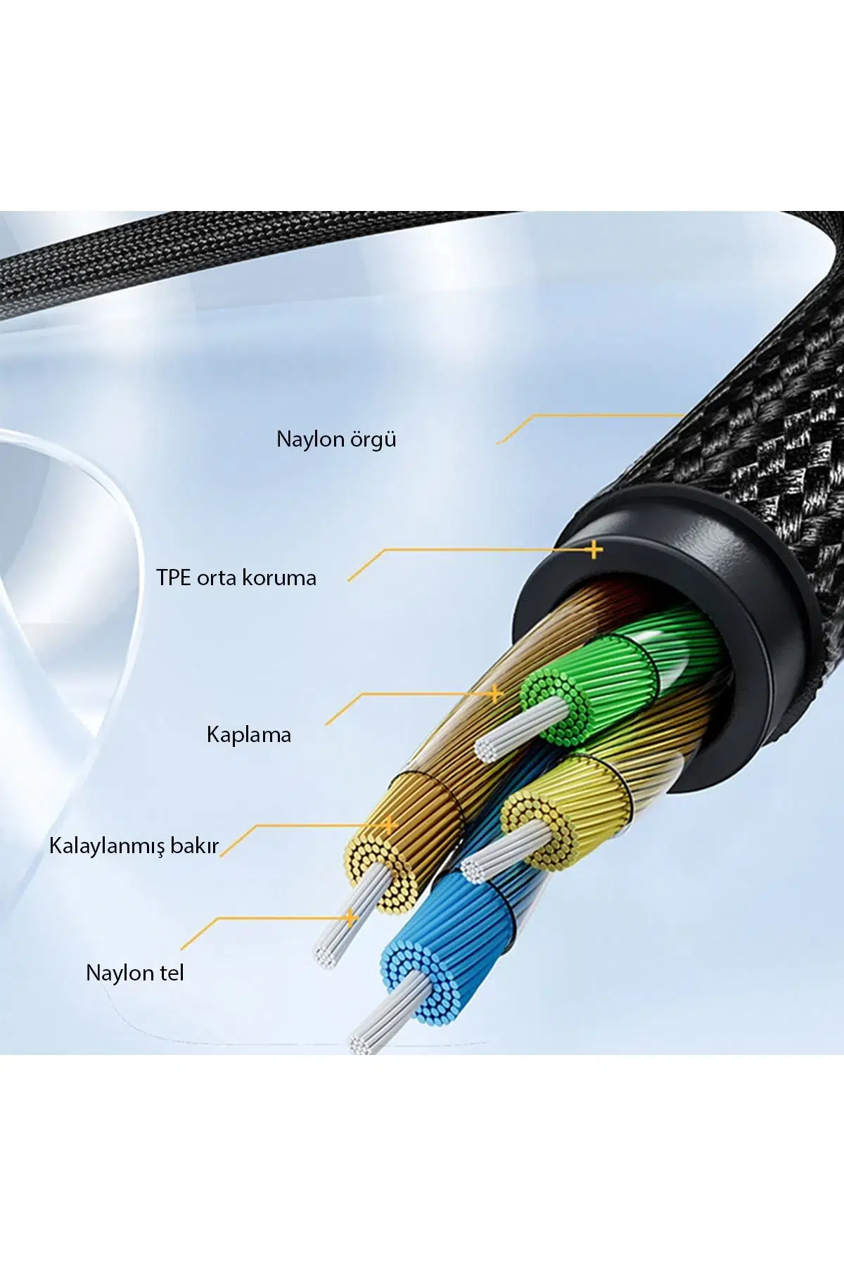 Naylon örgü kablo, hem daha uzun ömürlü hem de karışmayan bir kullanım sunar. Dilediğiniz her yerde rahatlıkla taşıyabilirsiniz.