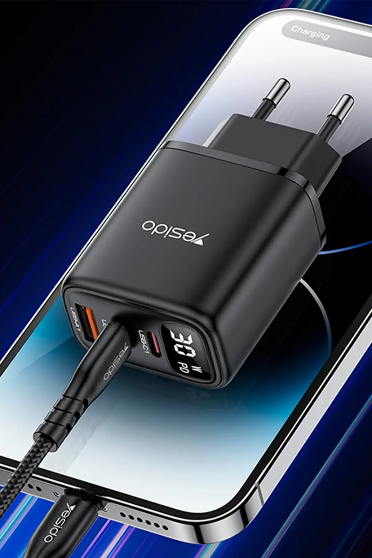 Yesido YC69 Dijital Göstergeli 1 Adet 30W USB ve 2 Adet 30W Type-C