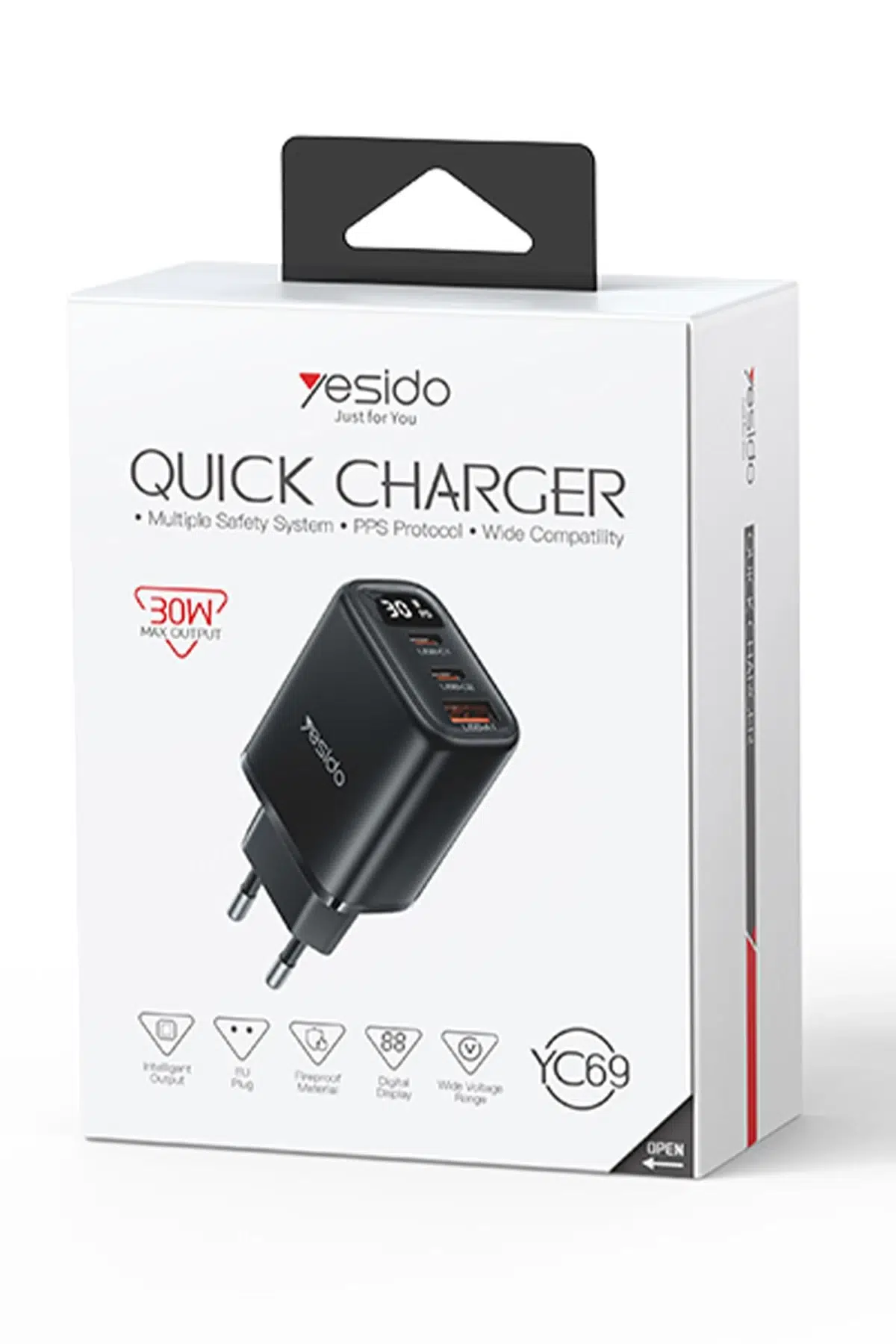 Yesido YC69, güçlü ve gelişmiş tasarımıyla aynı ve üç farklı hızlı bir şekilde şarj imkanı sunan, gelişmiş bir şarj adaptörüdür. Dijital ekran göstergesi sayesinde gerçek zamanlı voltaj ve akım değerlerini takip edebilir, cihazların güvenli ve verimli bir şekilde kullanılmasını sağlayabilirsiniz. 90W güç çıkışı sunan bu model, Güç Dağıtımı (PD) ve Toplam Hızlı Şarj (QC) teknolojileriyle donatılmış olup geniş bir cihaz yelpazesiyle uyumludur.