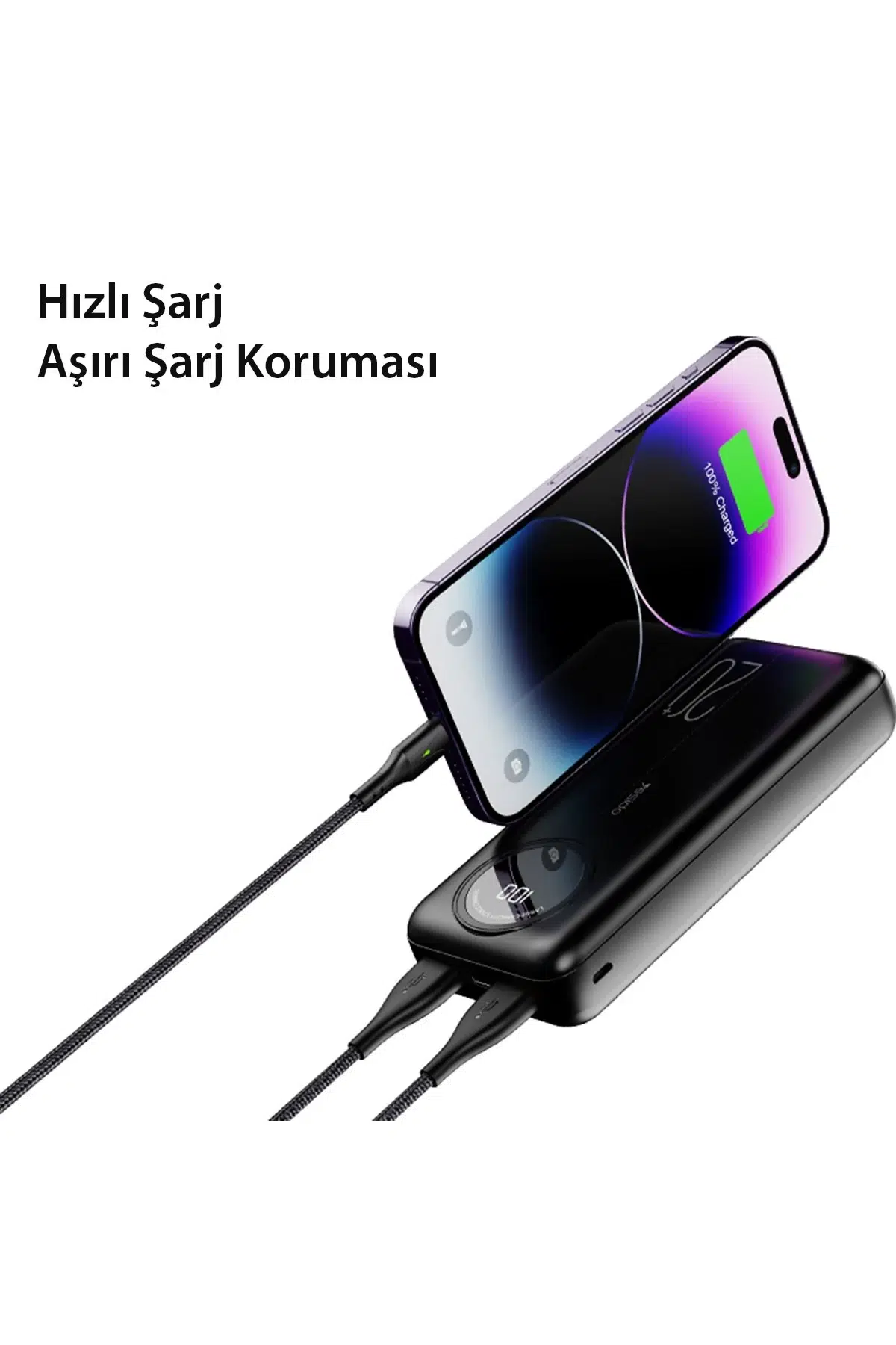 Bu özelliklere sahip bir cihaz, taşınabilir ve kullanımı kolay bir şarj cihazıdır. LED ışıklı dijital göstergesi sayesinde cihazın şarj seviyesi hakkında bilgi verir ve 2 adet USB çıkış portu sayesinde iki farklı cihaz aynı anda şarj edilebilir.