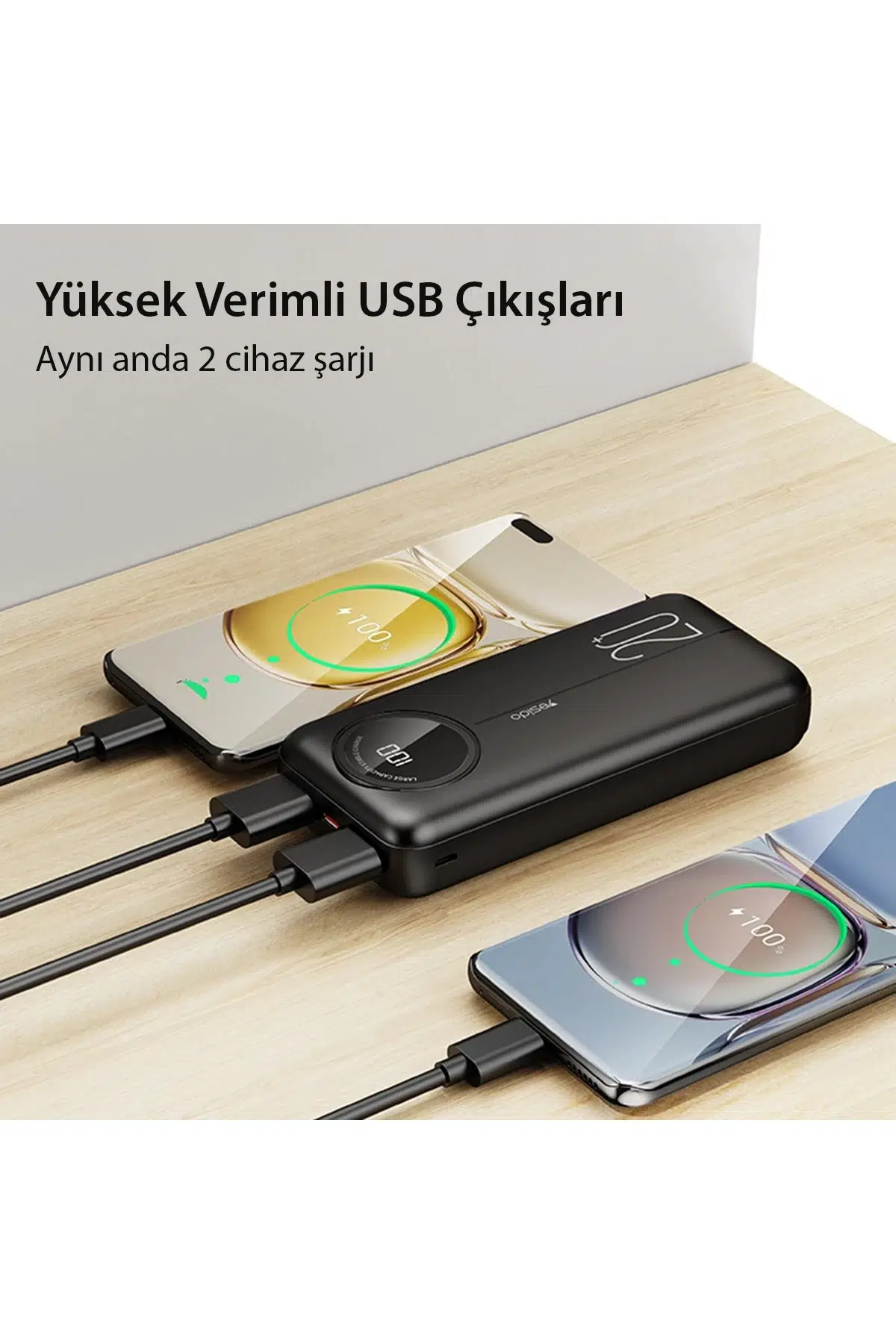 Cihazın 2 adet USB çıkış portu bulunmaktadır, bu sayede iki farklı cihaz aynı anda şarj edilebilir. Ayrıca, cihazın Type-C ve Micro Şarj Giriş Portu özellikleri sayesinde farklı cihazlara uyumlu olarak kullanılabilir.