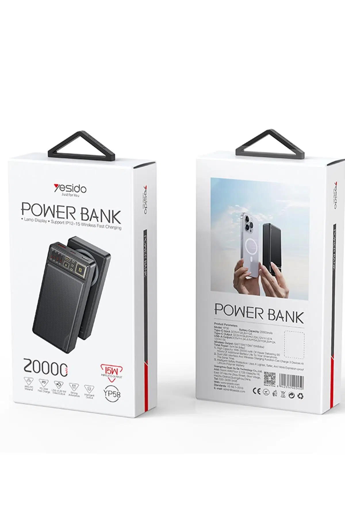 Yesido YP58 20.000 mAh Led Şarj Göstergeli 22.5W USB3.0 ve 20W Type-C Çıkışlı 15W Kablosuz Şarjlı PD Hızlı Şarj Magsafe Powerbank