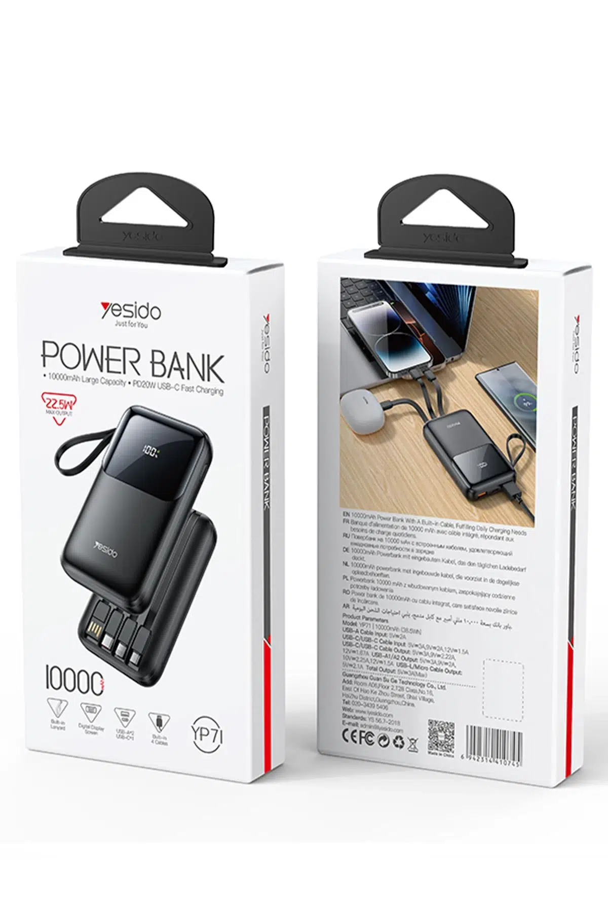 Yesido YP71 Dijital Göstergeli 10.000 mAh 6in1 22.5W PD Hızlı Şarj Powerbank