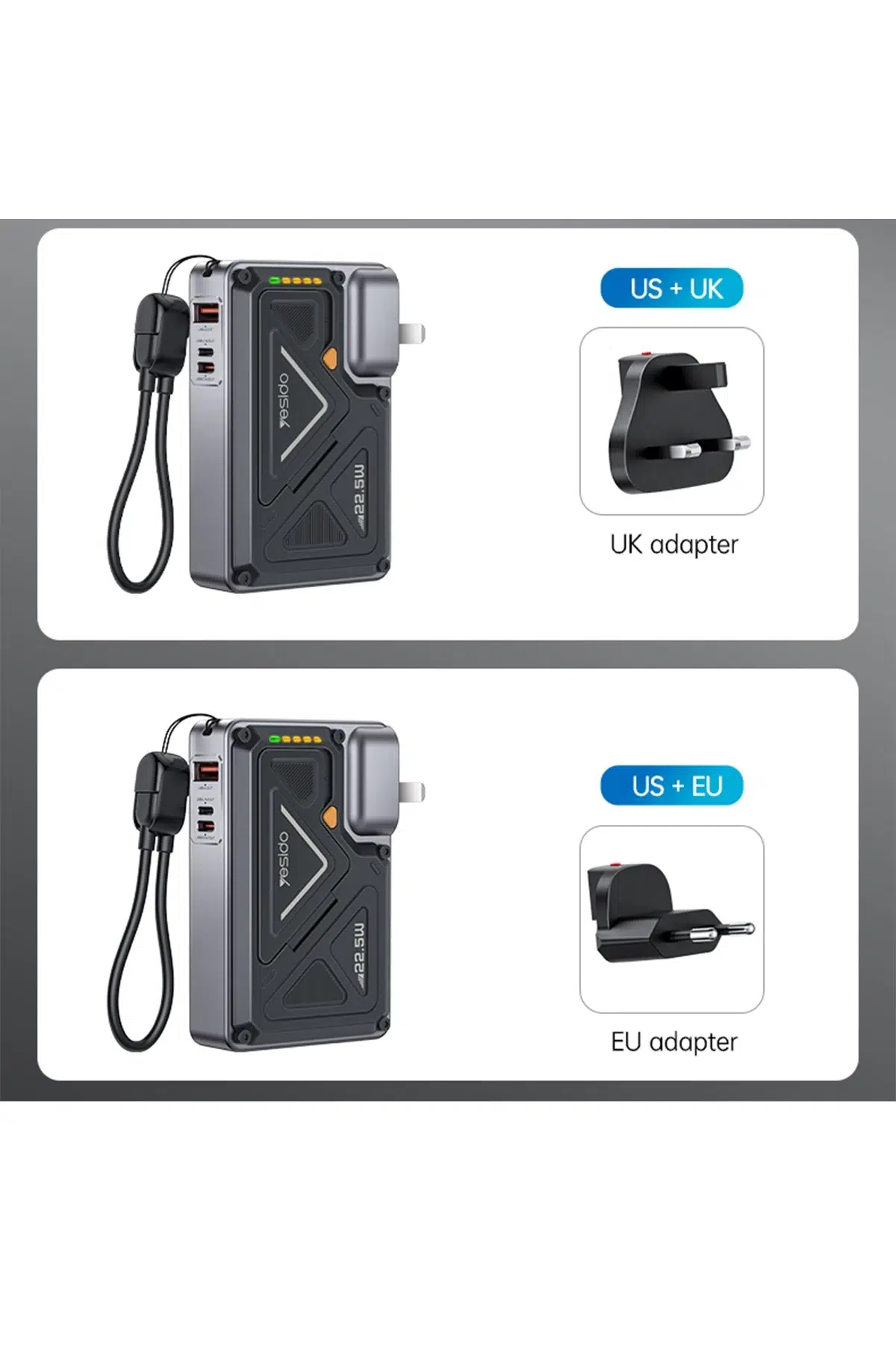 Hem AC (şebeke) hem de DC (batarya) giriş/çıkış seçenekleri ile 10000mAh taşınabilir şarj cihazı, farklı cihazları her ortamda kolayca şarj etmenizi sağlar.