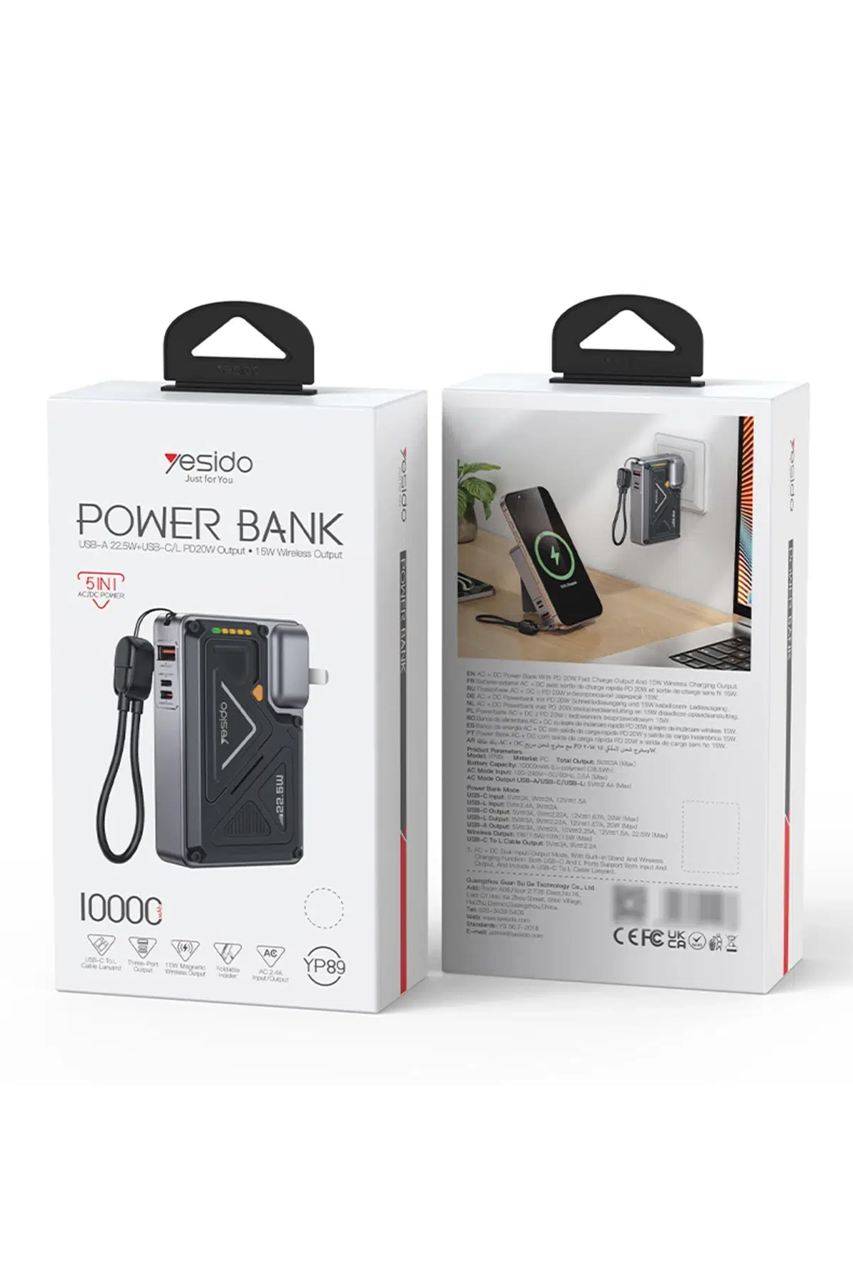 Yesido YP89 Akım Korumalı ve Stantlı 10.000 mAh 5in1 22.5W PD ve 15W Kablosuz Hızlı Şarj Destekli Magsafe Powerbank