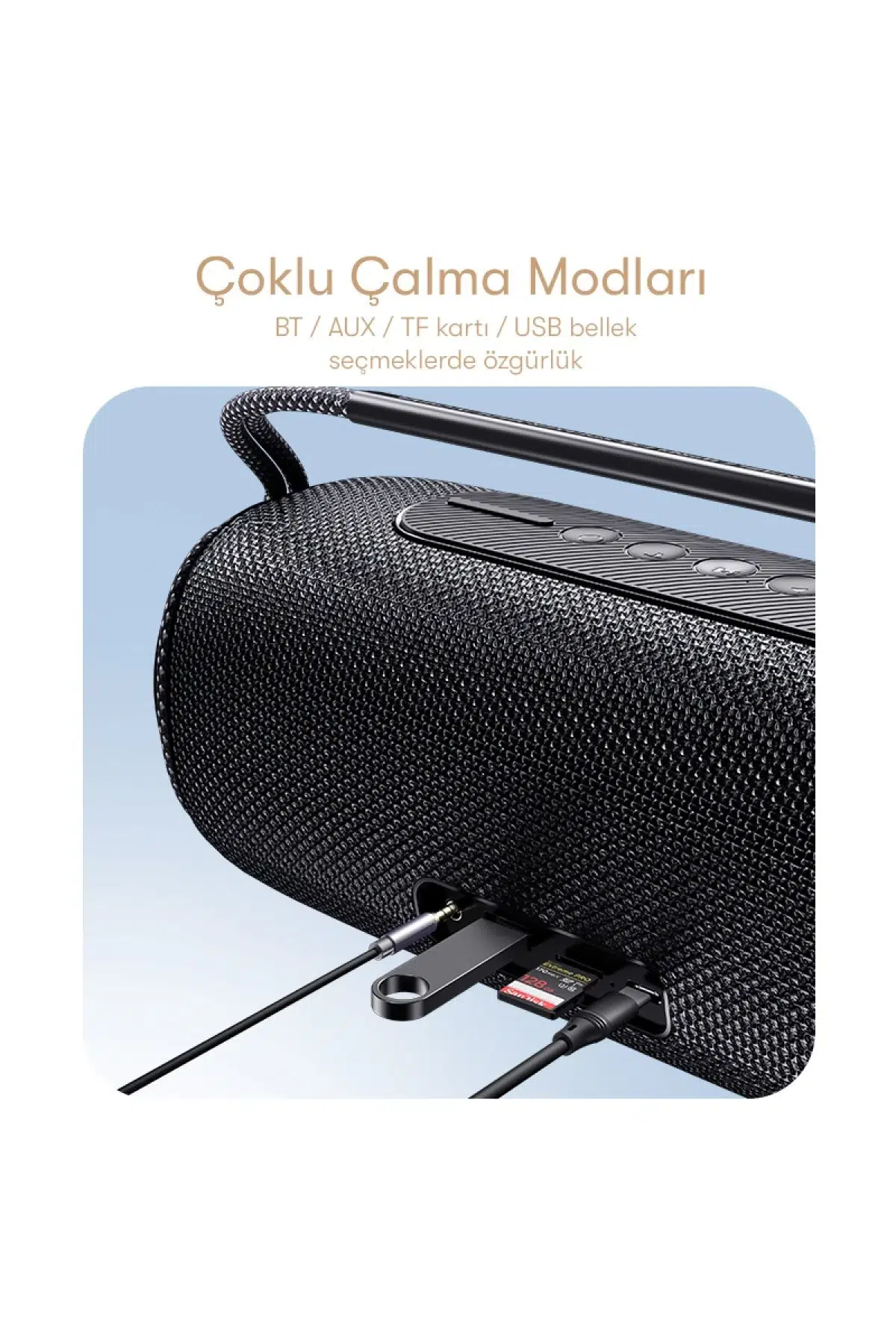 Farklı oynatma modlarını (Bluetooth, hafıza, AUX vb.) destekler.